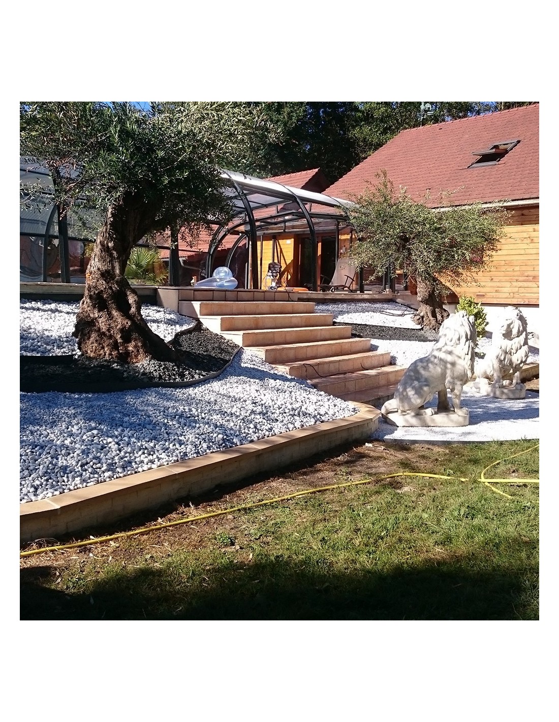 Aménagement intérieur / extérieur Olivier 250 - 300 ans sur un lit bordé de cailloux blanc DEV-AM02 Aménagement extérieur pour un particulier (Gouvieux - 60) Il comprend : 1 Olivier 250-300 ans 300 cm Bordure Borderfix Ubbink 15 m Cailloux blancs Terreau pour plantes méditerranéennes Spots lumineux Main d'oeuvre (nous consulter via le formulaire de contact) Frais de Livraison (nous consulter via le formulaire de contact) Voir