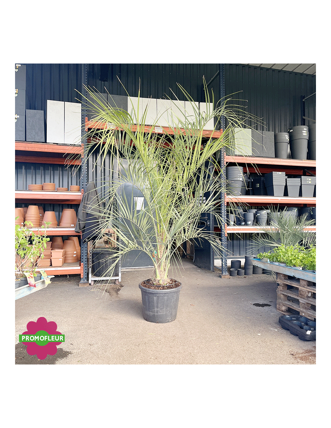 Ce Palmier qui mesure 225 cm de hauteur environ provient d’Espagne. Il a une résistance impressionnante au froid (résiste au gel jusqu’à -15°C) mais aussi à la sécheresse. Il peut s’acclimater partout en France sauf dans les sols trop acide (terre de bruyère).