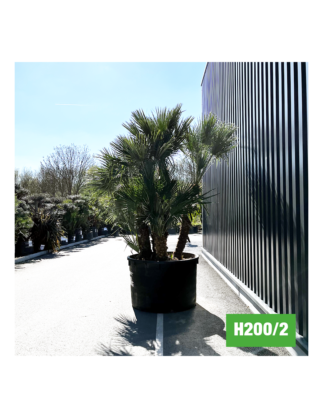 Est-ce un palmier pas cher ? En tout cas pour beaucoup de nos clients, le H200-2 est un palmier nain multi-troncs extrêmement touffu de 300 cm de hauteur avec son pot qui respecte notre slogan « La Fleur et le Jardin à Prix Content » !