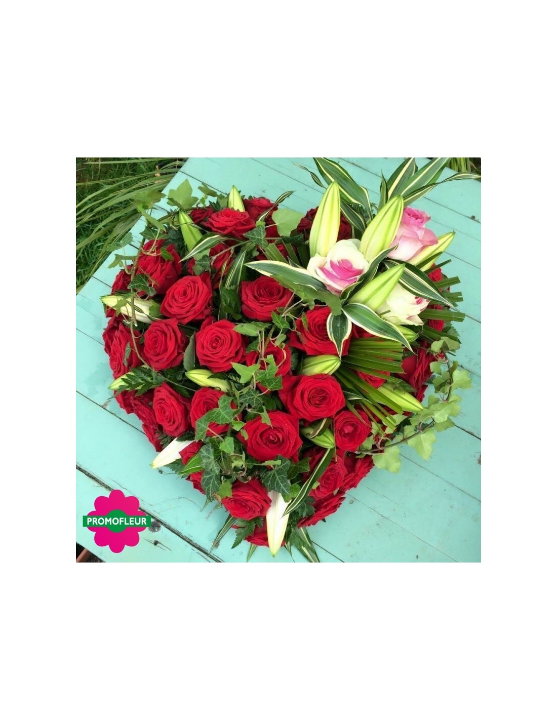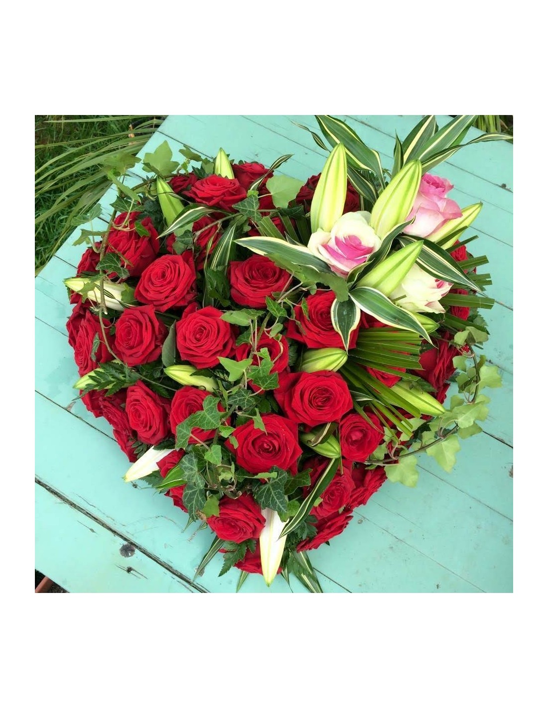 Deuil coeur en roses