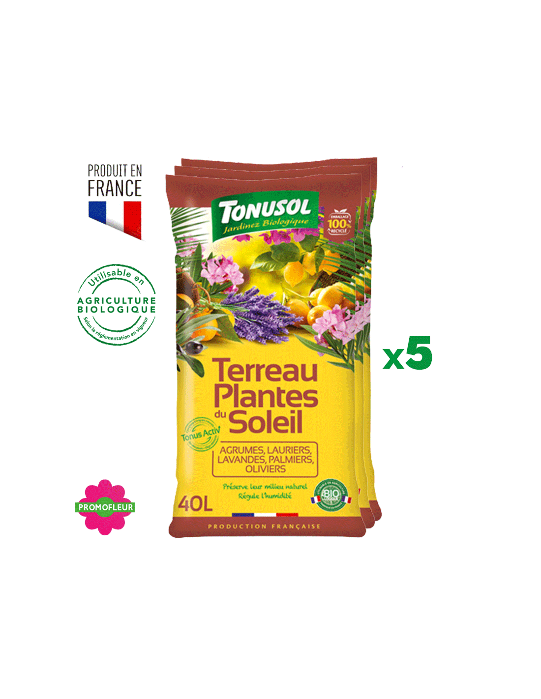 Terre plante du soleil 40 L X5 - Terreau Tonusol