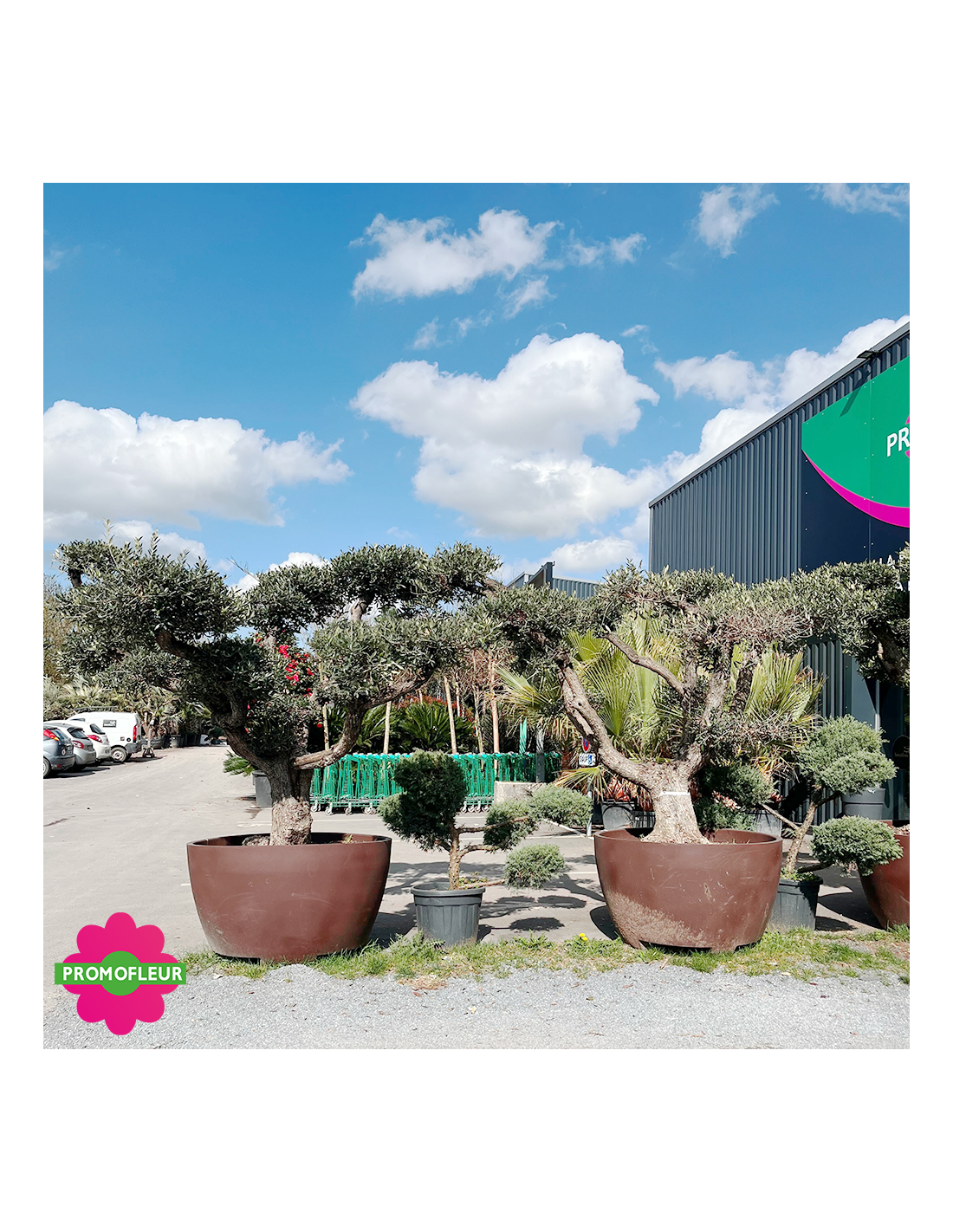 Olivier plateau Pot Déco 690 L Hauteur 250 cm feuillage taillé en nuage