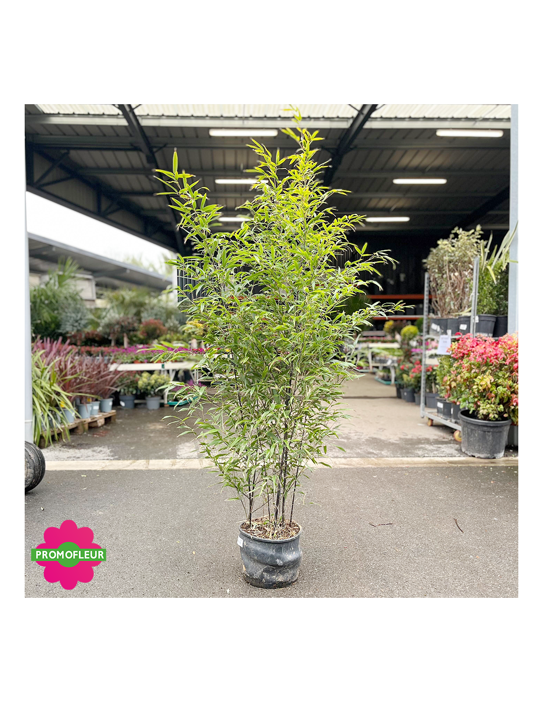 Le Bambou Nigra (bambou noir) est un bambou possédant des cannes noires et des feuilles vertes foncées. Pour 25,99 € / pièce, vous aurez droit à un pot de bambou noir contenant plusieurs cannes mesurant entre 120 à 150 cm de hauteur. Ces cannes peuvent atteindre jusqu'à 6 m en taille adulte.