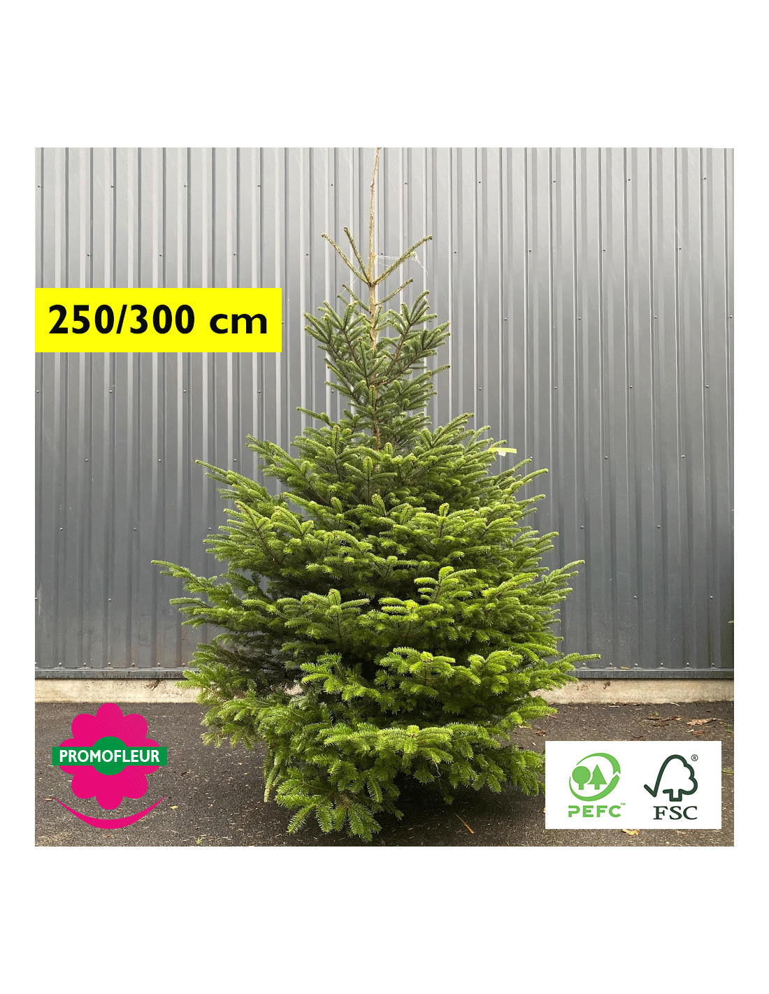Sapin de Noël coupé Nordmann 250/300 cm (Ruban Jaune) avec buche - Promofleur Champagne-sur-Oise)