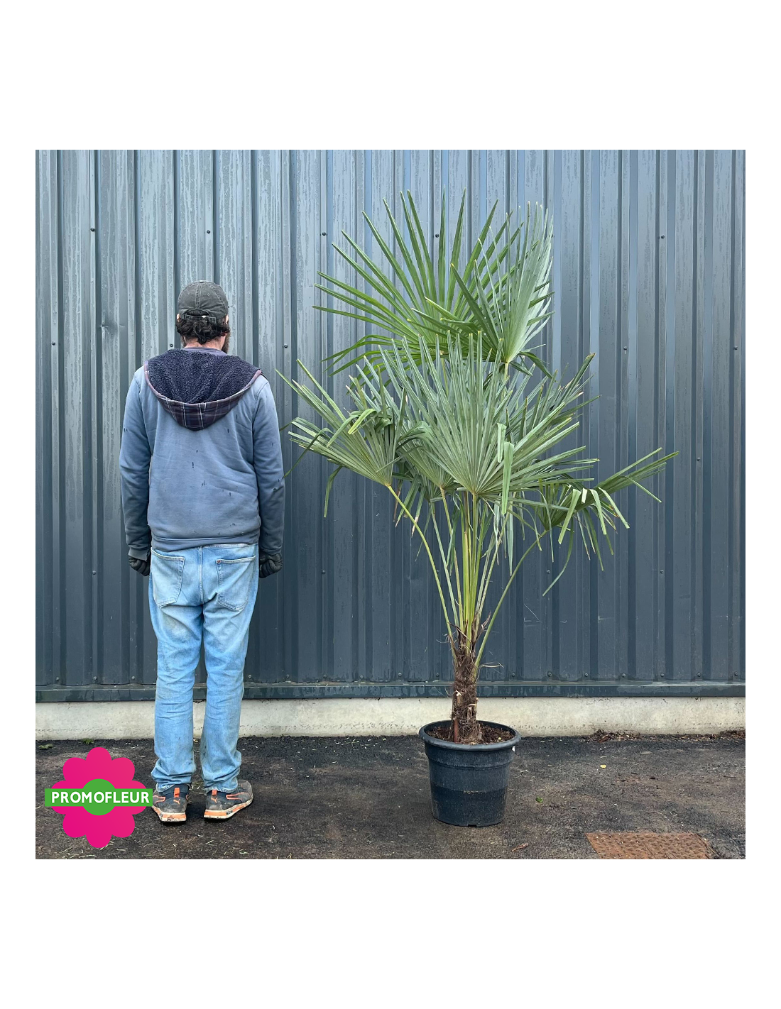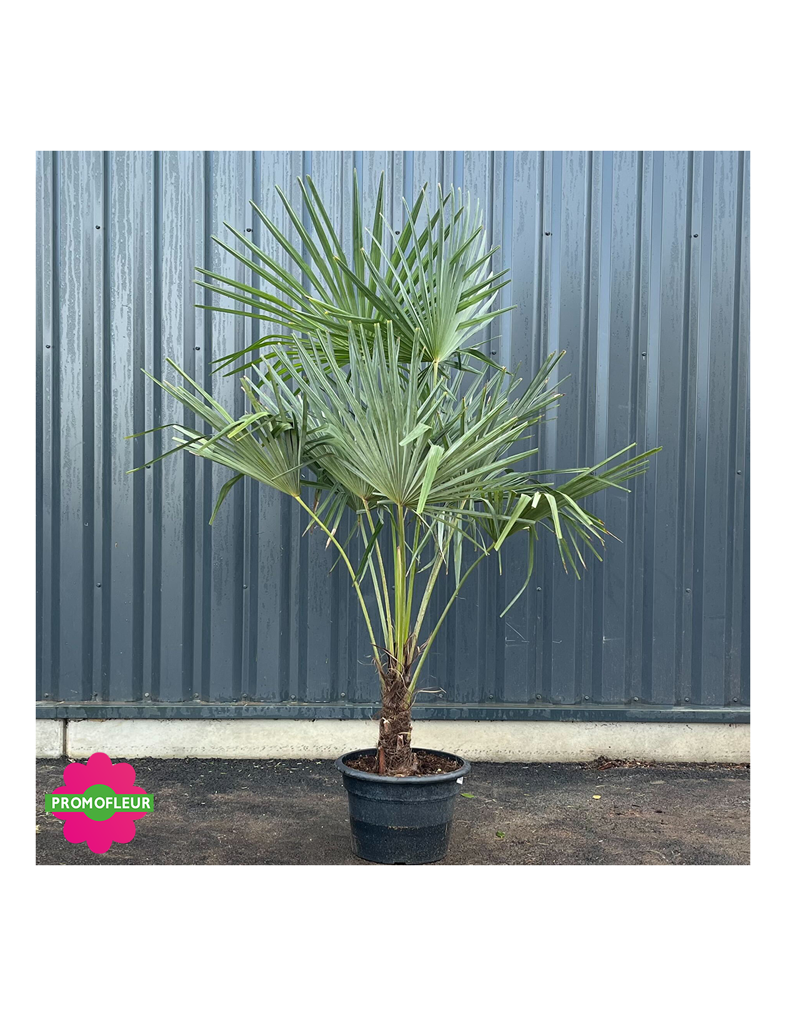 Le Palmier Trachycarpus Fortunei (Palmier Chanvre ou Palmier de Chine) de 150/175 cm de hauteur environ avec le pot provient d’Espagne. Le chanvre de son tronc lui assure une résistance impressionnante au froid (résiste au gel jusqu’à -18°C) mais aussi à la sécheresse. Il peut s’acclimater partout en France.