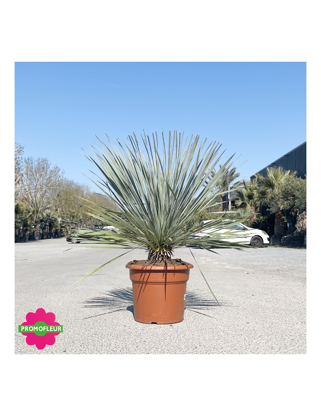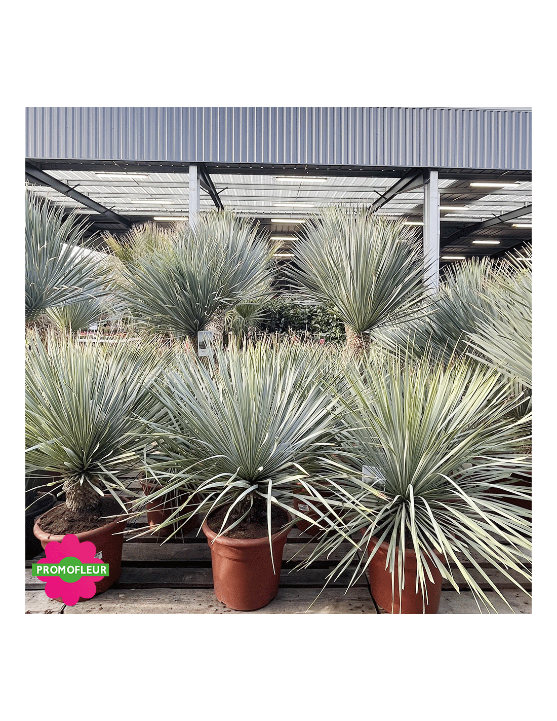 Le feuillage bleuté et argenté est LA spécificité de ce yucca. En effet, en plus de la forme sphérique de son feuillage, le yucca rostrata 'Blue Swann" donne un effet décoratif unique à votre jardin !